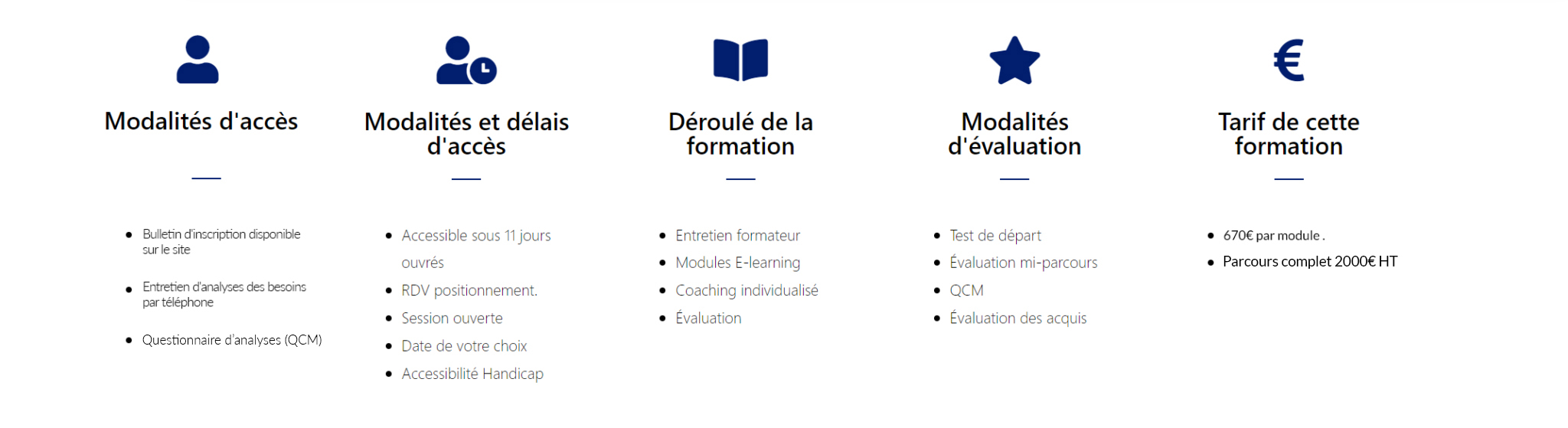 - Formation 100% à distance donc ne nécessite aucun déplacement physique. Nous consulter pour tout type de handicap, la société HFC sera adapter la formation ou vous réorienté vers les bonnes personnes.